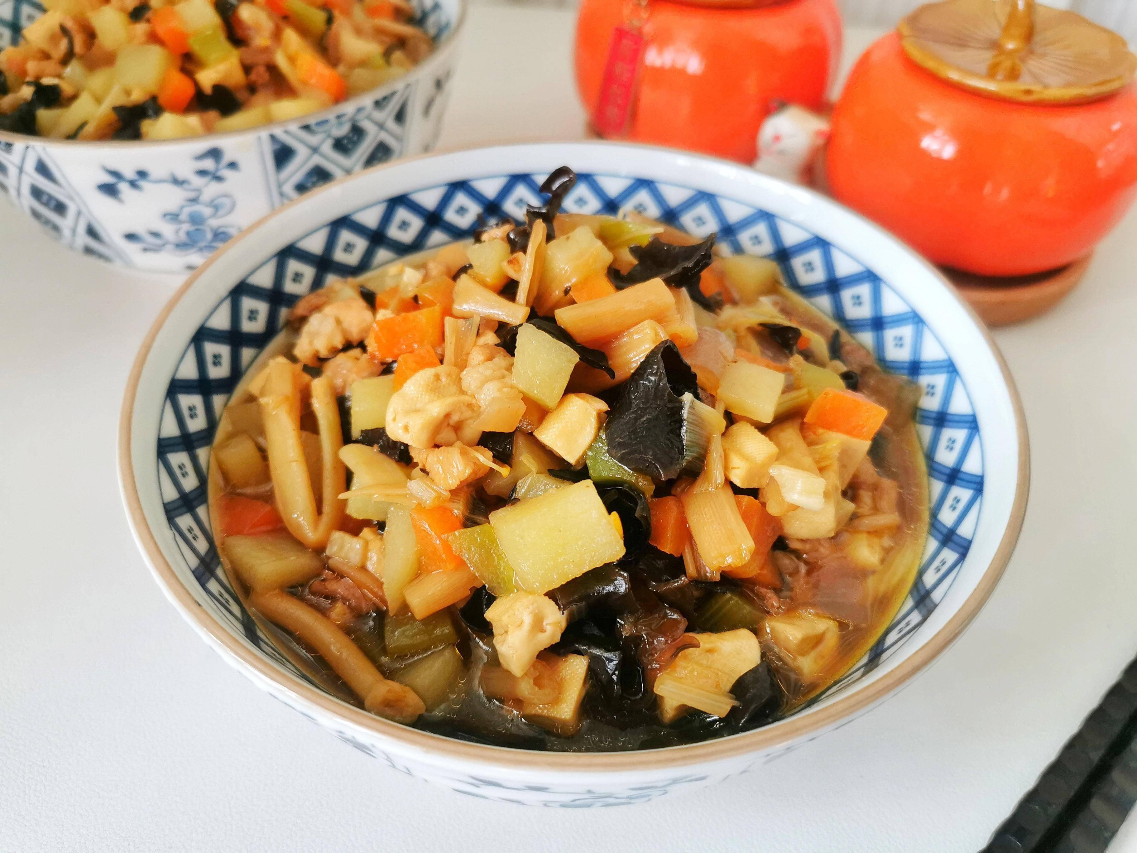 臘八面的滷有很多種,臊子裏的食材可以根據自己喜歡隨意添加,有葷有素,澆頭蓋於麪條之上,拌勻,味道真的超讚。不管怎麼喫,健康美味,適合自己最好。