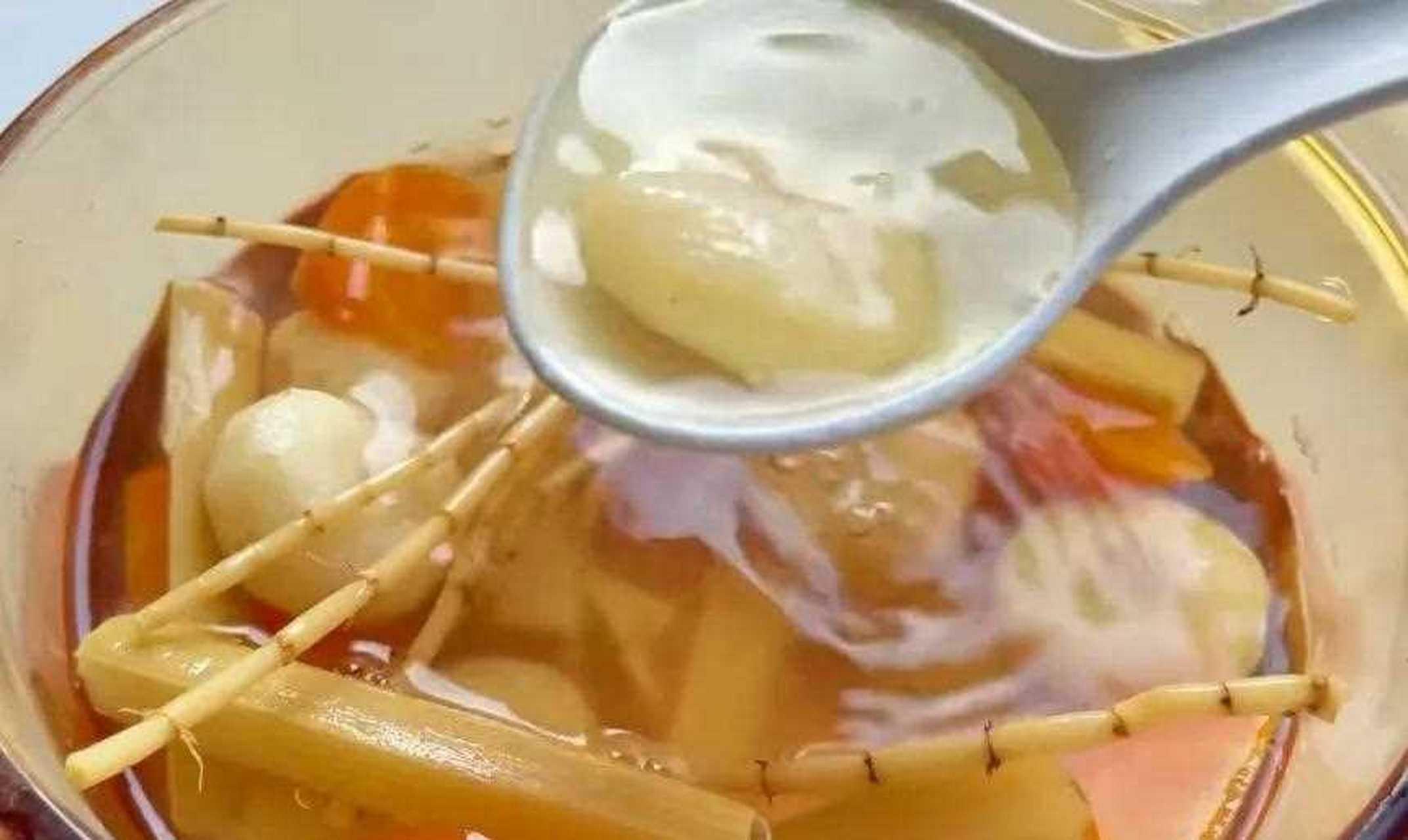 馬蹄加甘蔗茅根一起煮湯喝,堪稱一種天然的良藥,冬季裏一道養人湯。