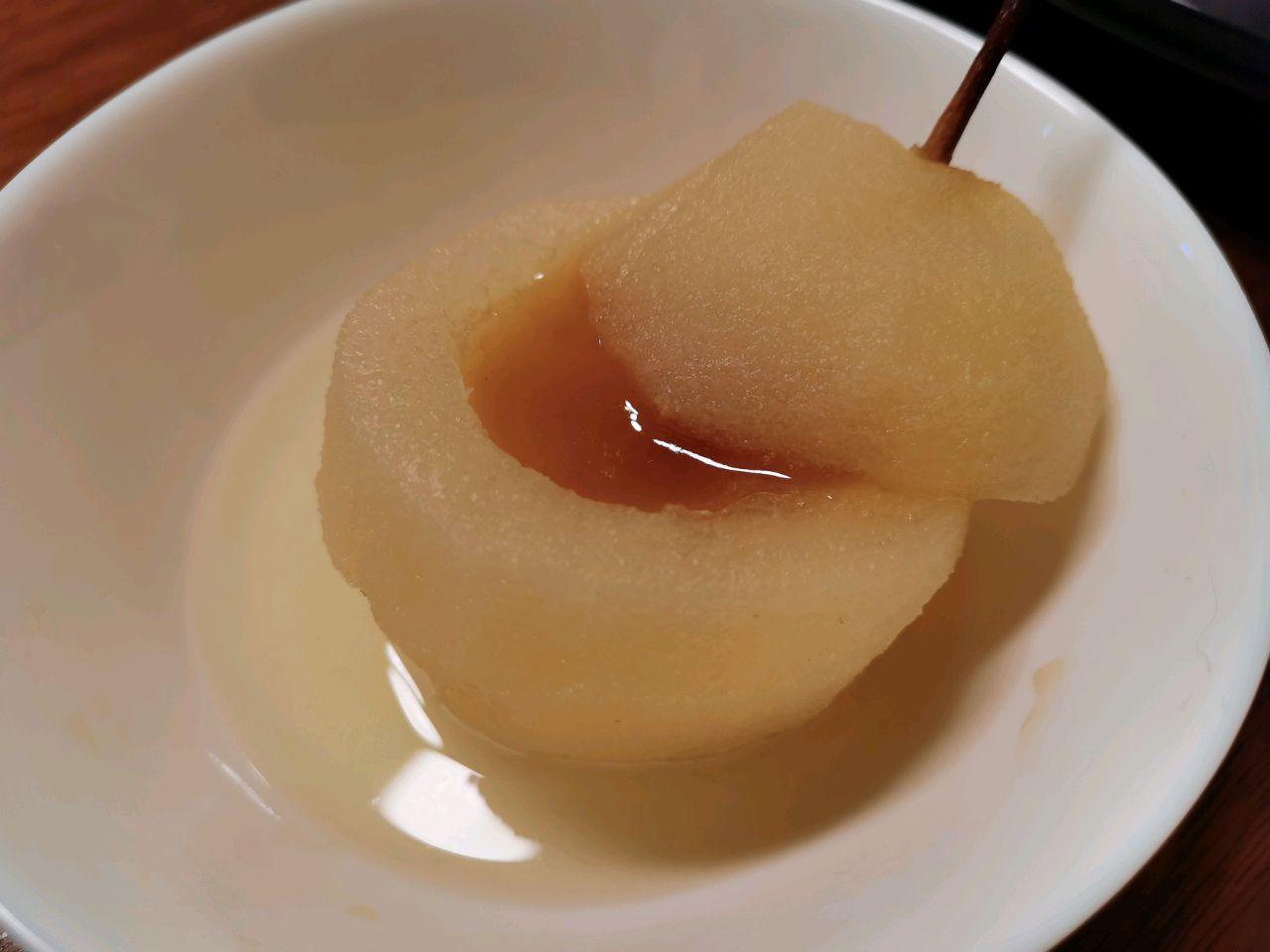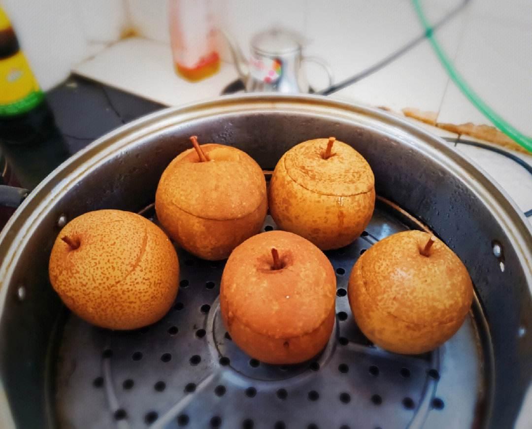 4放進鍋裏大火來蒸,直到梨變軟、湯汁流出即可