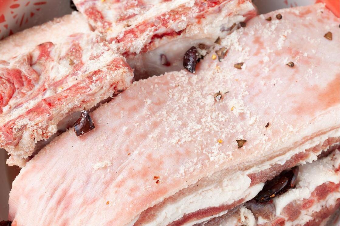 3、提前抹上高度白酒,在醃製過程中不會變質,還可以延長臘肉的保質期,放上1年都不怕壞,這是第1個要點。隨後,咱們再把鹽準備好,具體放多少鹽合適?因爲放多了會太鹹,放少了又容易壞,因此掌握好比例是關鍵。