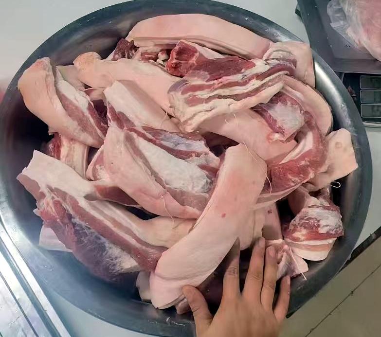 2、選後肉一定要分割,那就是便於操作,一般都是遵循便於晾曬、便於醃製、便於拿取,按照一寸寬、七寸長的長條來切割,這種尺寸便於醃製和入味,而且這樣一塊肉正適合一頓的量,切好後在每一塊肉的一頭肉皮上戳一個口,這樣有利於穿上繩子掛起來晾曬。