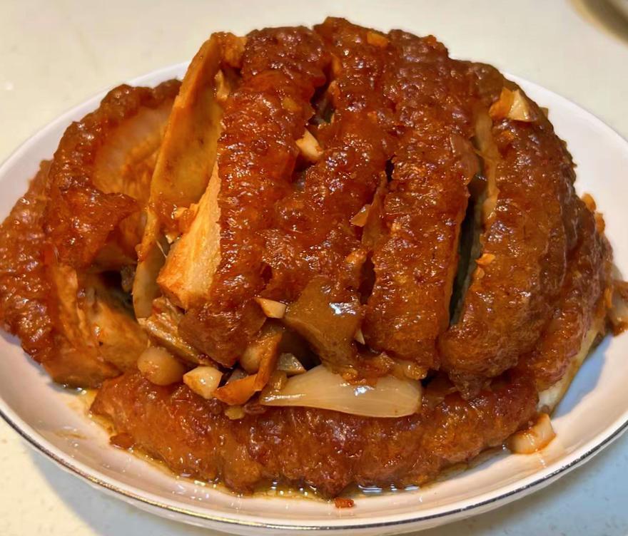 在我們山東的美食,就有著名的八大碗,顧名思義,是由八道獨具特色的菜餚組成。這八道菜,每一道都蘊含着山東人民的智慧和對美食的熱愛。而這八大碗中,在過年最具有代表性的就是扣肉,片片肥瘦相間的五花肉,整齊地碼放在碗中,經過長時間的蒸煮,油脂滲出,肉變得軟糯可口,肥而不膩。接下來介紹一下扣肉的具體做法。