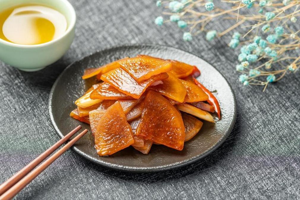 蘿蔔洗淨後切片,然後往裏面撒上適量的鹽殺水,半個小時後將水分倒掉。接下來,往蘿蔔中加上5勺生抽、5勺醋、1勺鹽、1勺白糖來調味,順便切點薑片、蒜片、小米椒也倒進去,充分抓拌均勻後,密封起來醃上一個晚上,就可以開喫了。