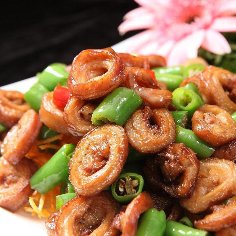 豬大腸,冬天喫的人可太多了,天氣冷了來一盤熱乎乎的爆炒肥腸,再來一小盅酒,越喫越痛快,越喫越上癮。最近還有肥腸包子、肥腸餡餅,都可受歡迎了,我們一家三口都愛喫。