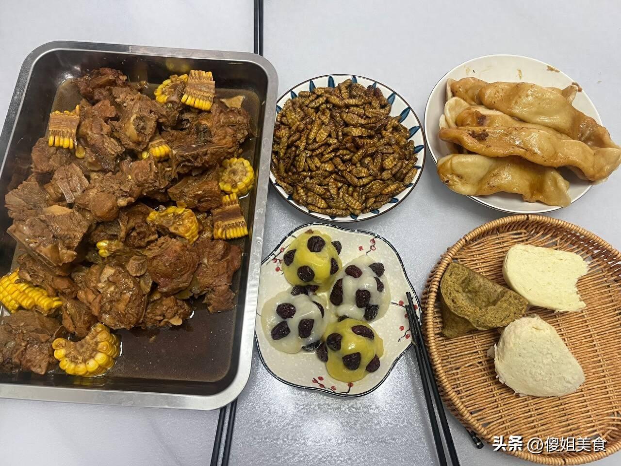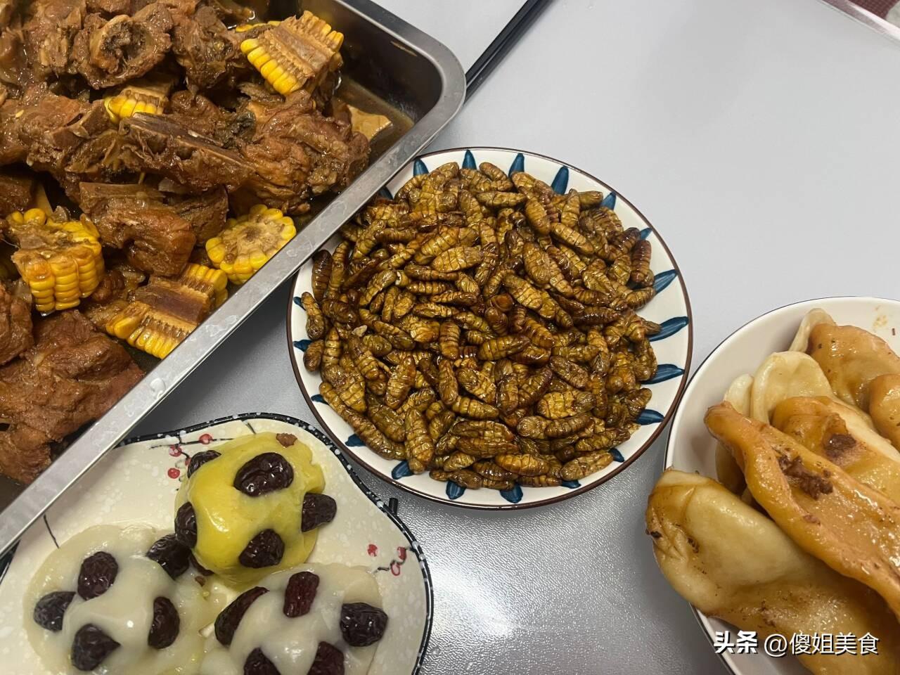 弟媳婦燉的大骨頭就是好喫,軟爛入味,一點都不腥不柴,鍋貼吸滿了湯汁,一點不油膩,越嚼越香。弟媳婦自己蒸的年糕,軟糯香甜,弟妹就是周到,還給老爸準備了一下下酒菜蠶蛹,一家老小圍在一起喫飯,說說笑笑,孩子們打打鬧鬧的真幸福。