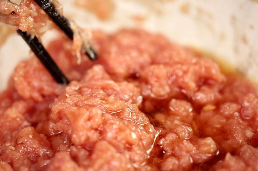 1、首先咱們買一塊豬肉,瘦肉多一些,肥肉少一些,買來後稍微清洗一下,把水分控幹之後,切成小塊,放在絞肉機中絞成肉餡。
