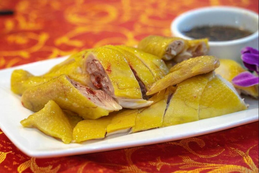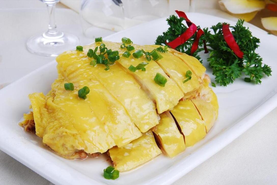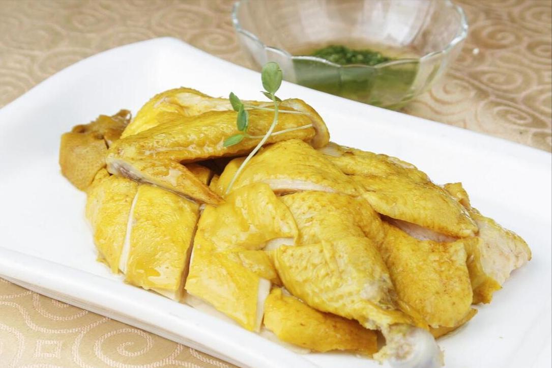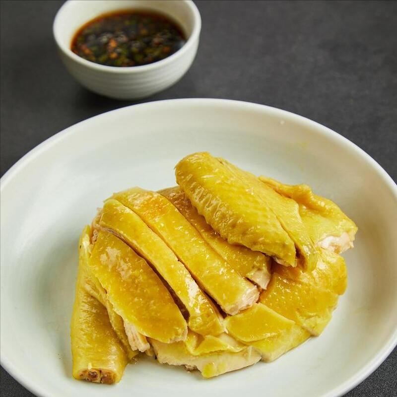 3、把雞肉撈出來抖一抖,然後再次放進去,這一次放進去轉爲最小火,繼續燜8分鐘的時間。然後再拿出來抖一抖,再放進去,繼續煮5分鐘,雞就完全熟透了,取出來過一下冰水,直至完全涼透後,切塊開喫,用蔥姜、鹽、生抽、香油做個蘸料蘸着喫。