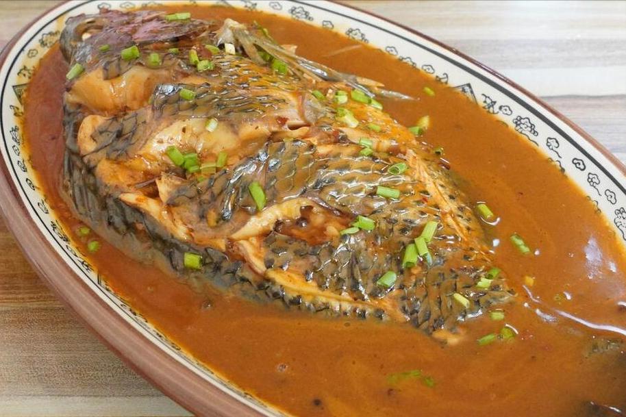 2、鍋子裏倒油,燒熱之後把魚下進去,兩面煎一下,然後再把蔥薑蒜倒進去炒香,接着用生抽、老抽、蠔油、鹽、雞精調味,然後添上適量的清水來燉。保持大火燉,燉上20分鐘左右,最後撒上香菜和小米辣,出鍋開喫!
