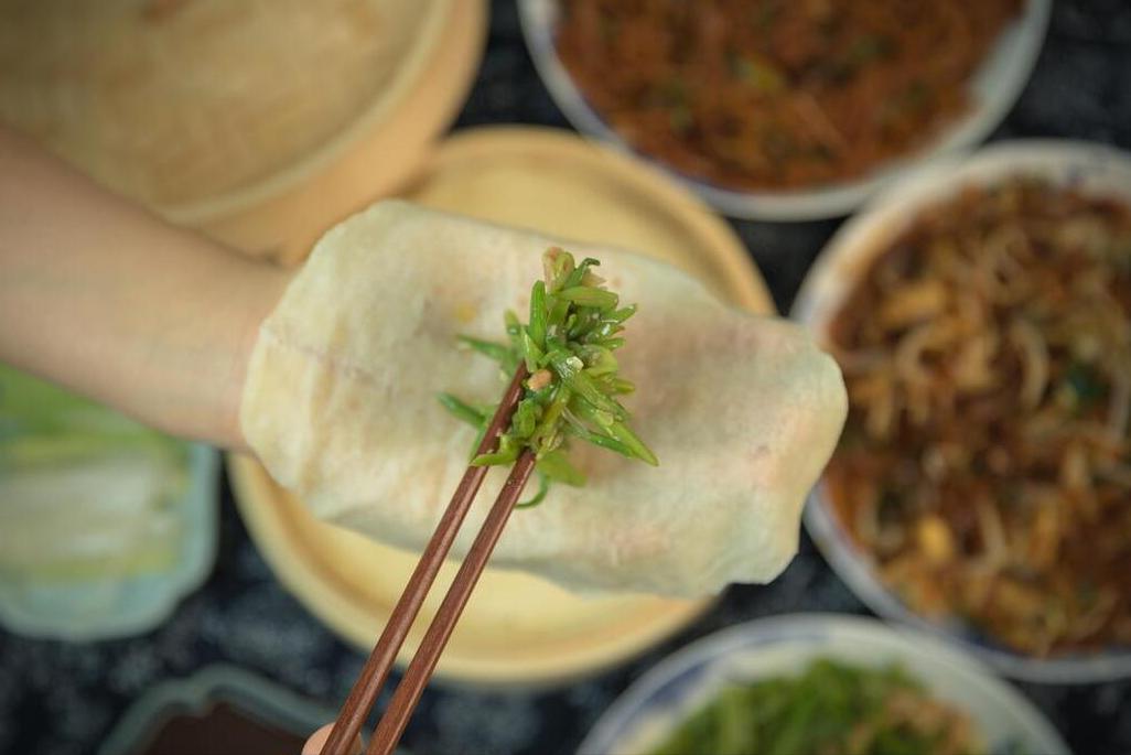 其實就是春餅,在尾牙節這一天統稱爲“潤餅”,裹着各種菜捲起來,味道鮮香,還寓意來年五穀豐登、平安美滿。