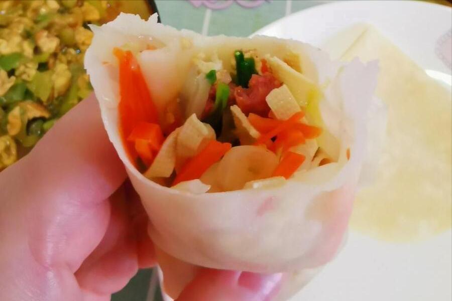 臘月十六尾牙節,當然少不了它的身影,薄如蟬翼,裏面裹上各種美食喫,一口下去鮮香無比,這天喫潤餅,寓意財源廣進。
