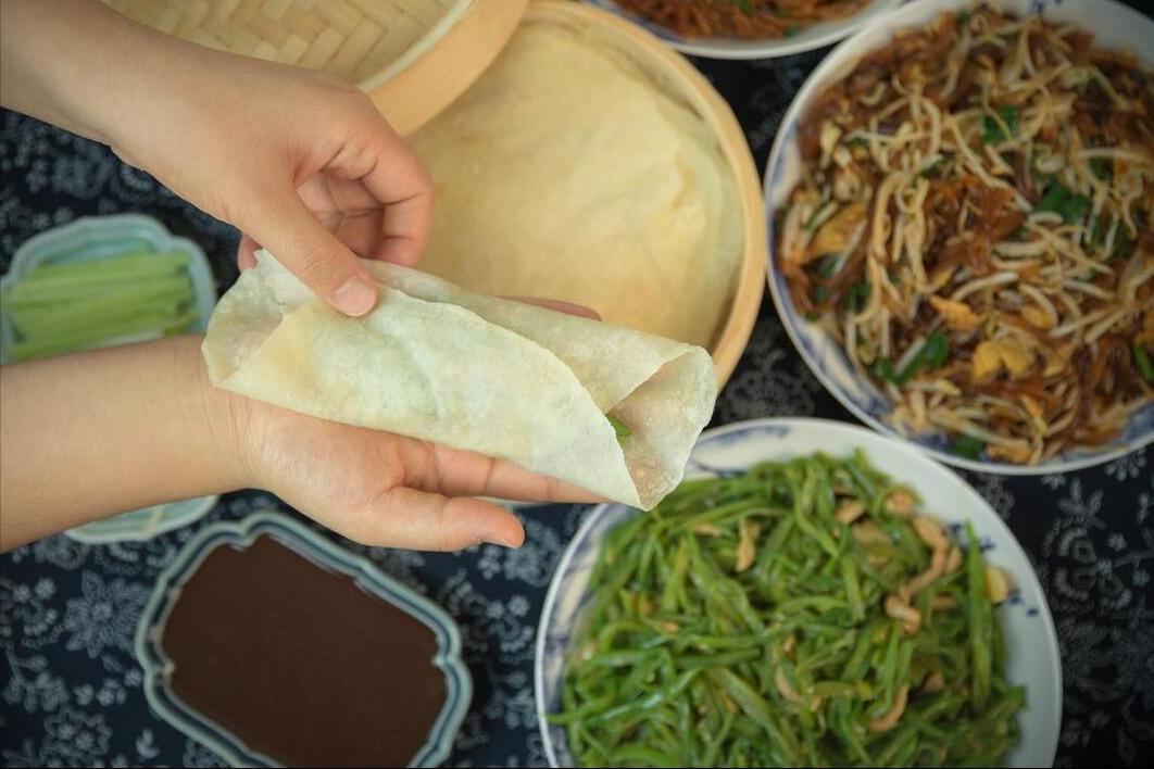 潤餅,南方北方都很流行,炒個土豆絲,炒個和菜,炒個豆腐皮,或者做個京醬肉絲,都可以夾進去喫,寓意團圓吉祥。