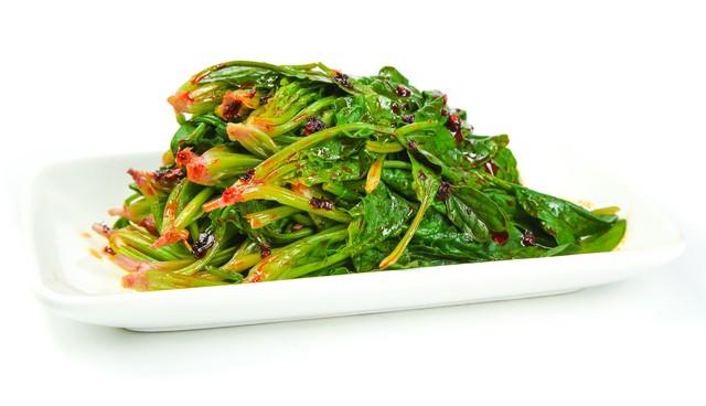 3、將菠菜段放入碗中,倒入涼拌汁,攪拌均勻,最後撒上白芝麻即可。