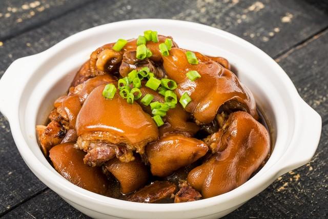 4、燉至肘子軟爛,用筷子輕鬆插入,根據個人口味加入適量鹽調味,最後大火收汁,湯汁濃稠後即可出鍋裝盤。