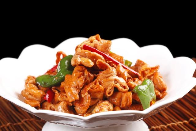 1、豬大腸處理乾淨,冷水下鍋,加入薑片、蔥段、料酒,大火煮開後撇去浮沫,煮5 - 6分鐘撈出瀝乾水分,切成小段。