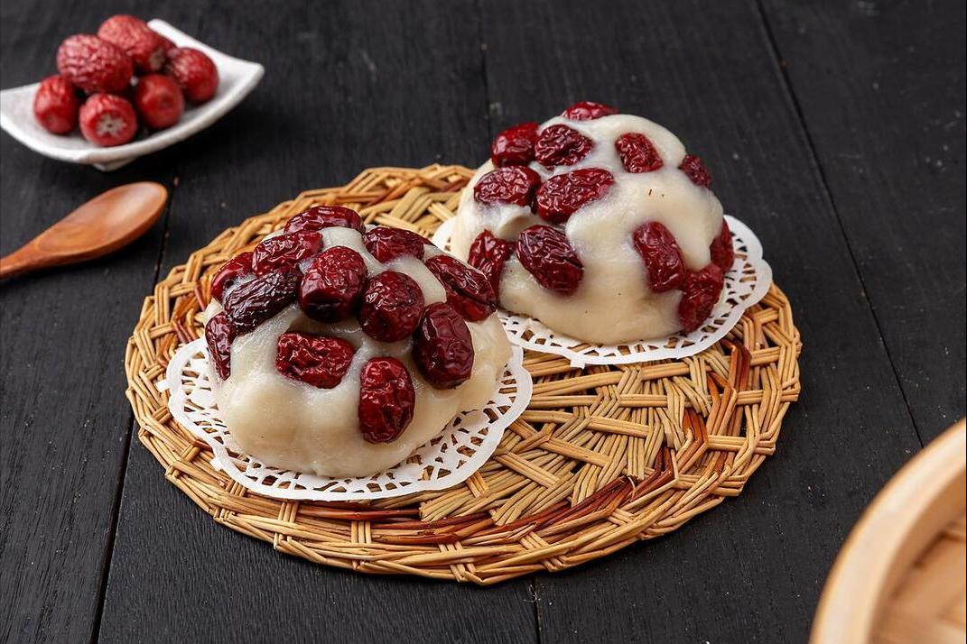 蒸年糕,做法其實很簡單,就是把糯米粉和清水混合,混合成合適的狀態後,揉成一個麪糰,不需要醒發,直接把麪糰分成數個劑子,每一個劑子都揉搓一下,揉搓好之後,團成年糕的形狀,在上面粘上紅棗,最後放在鍋子裏蒸,大火燒開後,繼續蒸20分鐘,出鍋開喫!