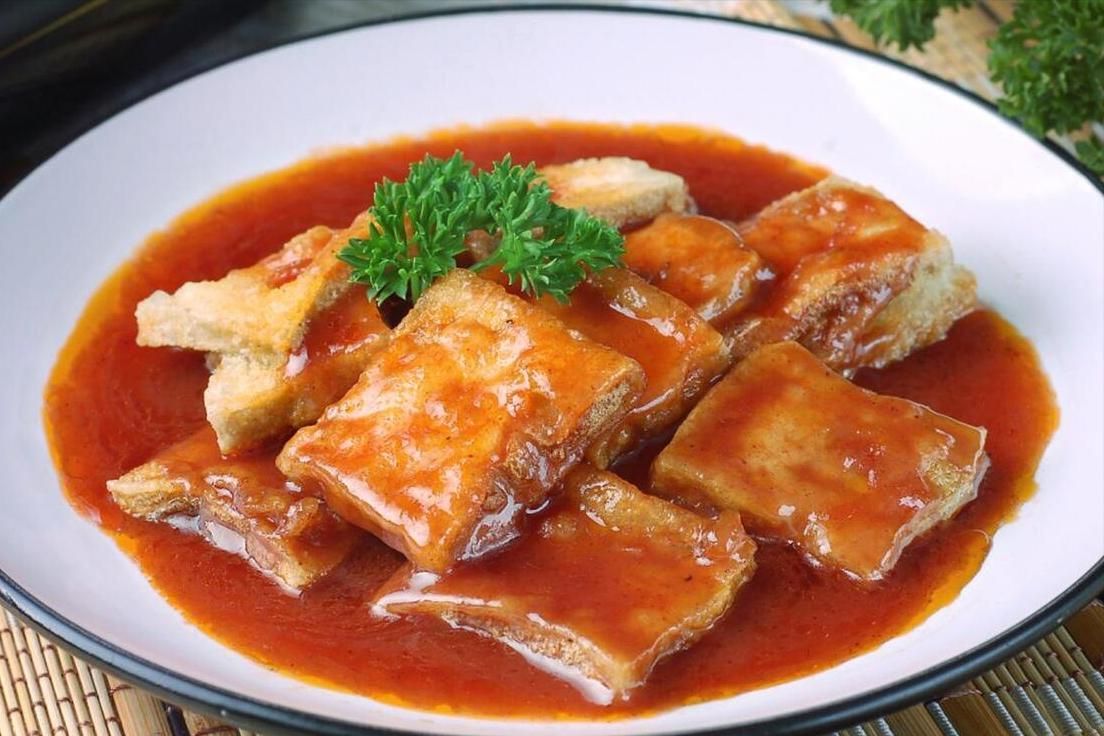食材:豆腐、蔥花、大蒜、雞蛋、鹽、白糖、番茄醬、生抽、老抽、蠔油、澱粉、食用油