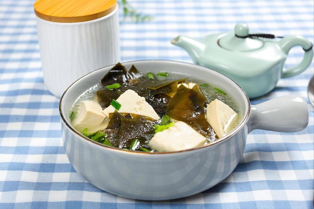 食材:豆腐、海帶、蔥花、大蒜、鹽、白胡椒粉、味精、食用油