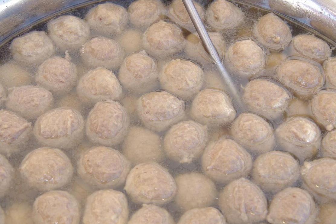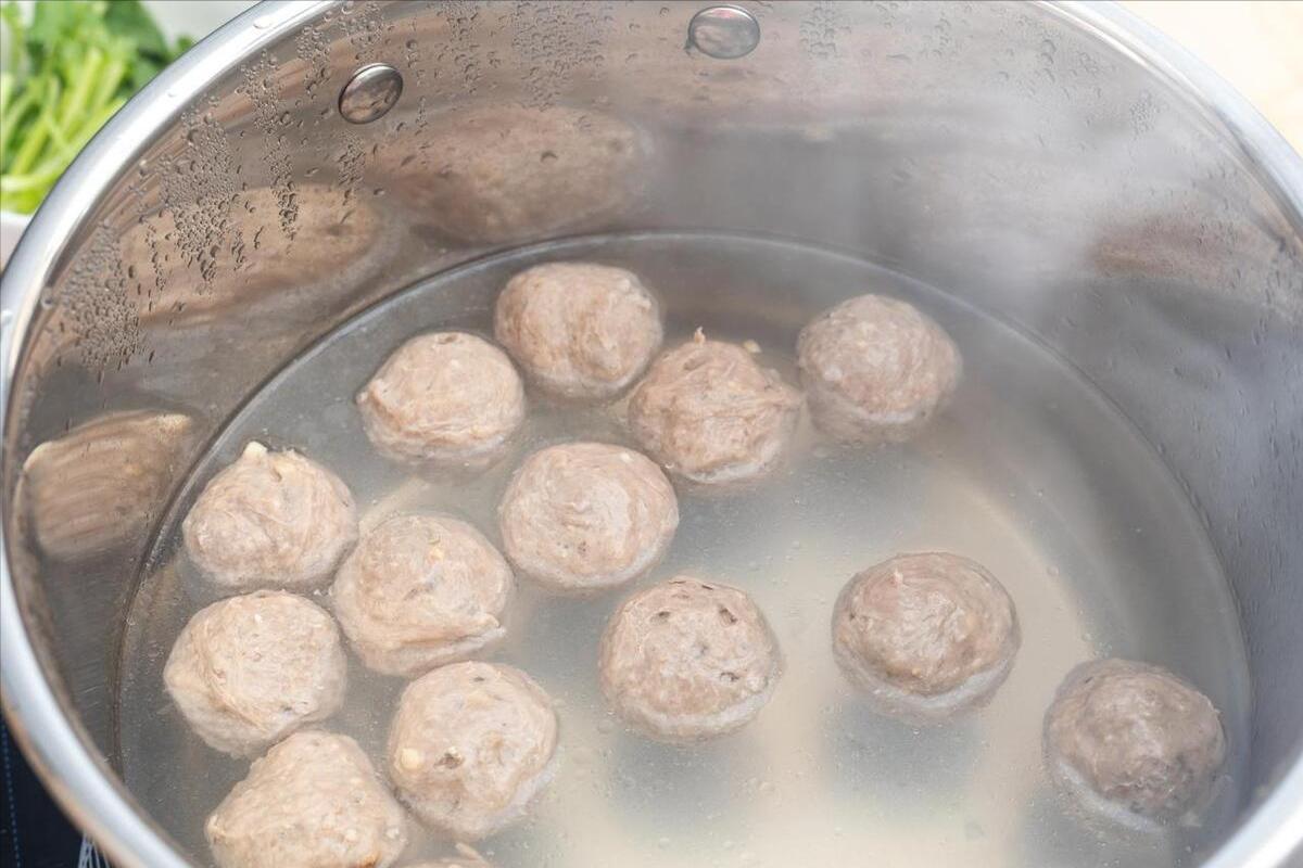 5、把牛肉餡擠在虎口處,團成一個個的丸子,然後用勺子舀出來,放在鍋子裏,把所有的牛肉丸都處理好之後,開大火開始煮丸子,直至煮到丸子全部飄起來,就可以撈出來了,喫不完的放冰箱冷凍,隨喫隨取特方便,味道鮮香Q彈。