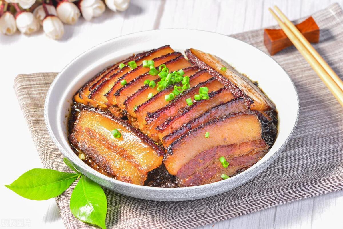 食材:五花肉 500 克、梅乾菜 100 克、蔥 1 段、姜 1 塊、八角 2 個、生抽 2 勺、老抽 1 勺、料酒 1 勺、鹽 1 小勺、白糖 1 小勺、腐乳 1 塊、食用油適量。