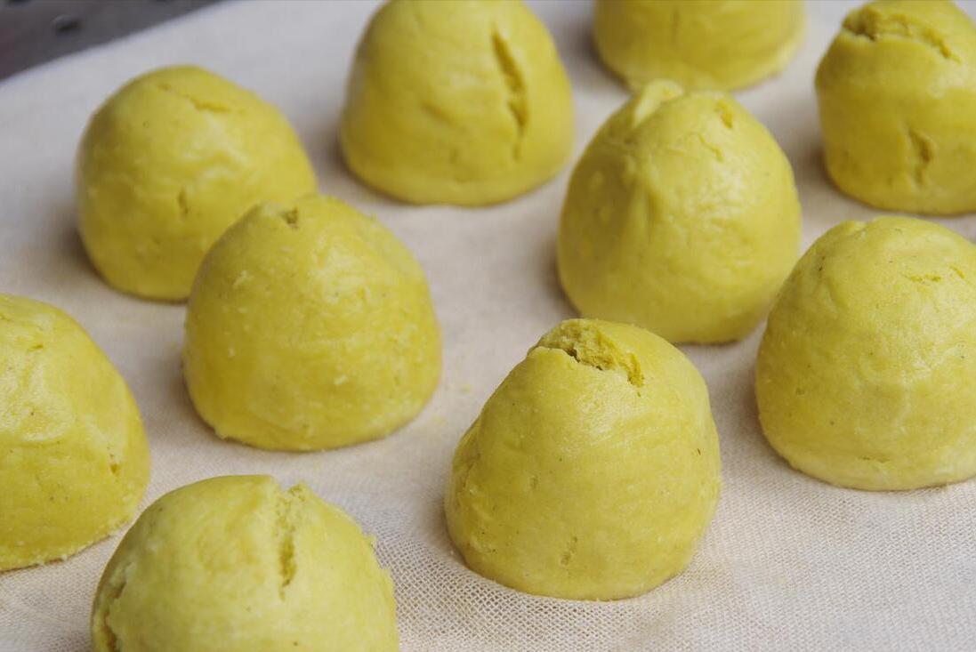 4、揉成麪糰以後,上面蓋上保鮮膜開始發酵,醒發半個小時之後,再把麪糰拿出來,繼續揉搓一下,然後分成數個劑子。每一個劑子,都揉成圓圓的窩頭形狀,然後均勻的擺放在蒸籠中。