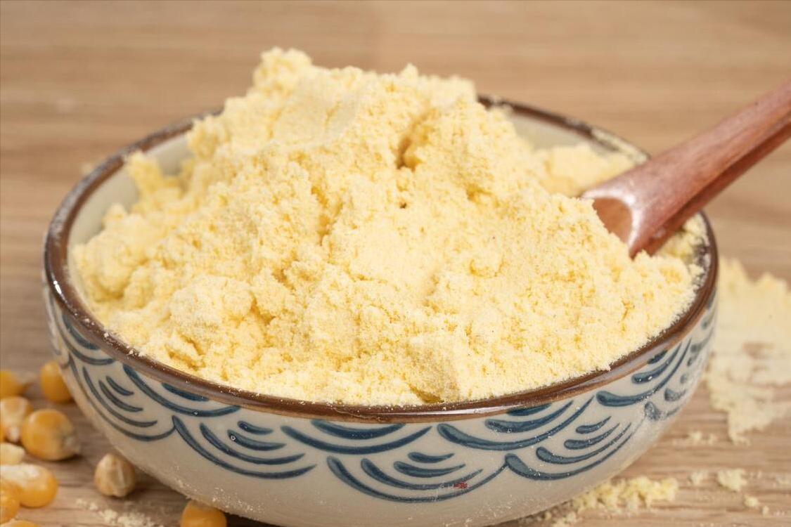 1、首先將玉米麪準備好,倒在一個小盆裏,如果只放玉米麪的話,蒸出來的窩頭肯定會特別噎人,很粗糙。