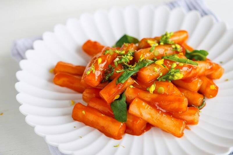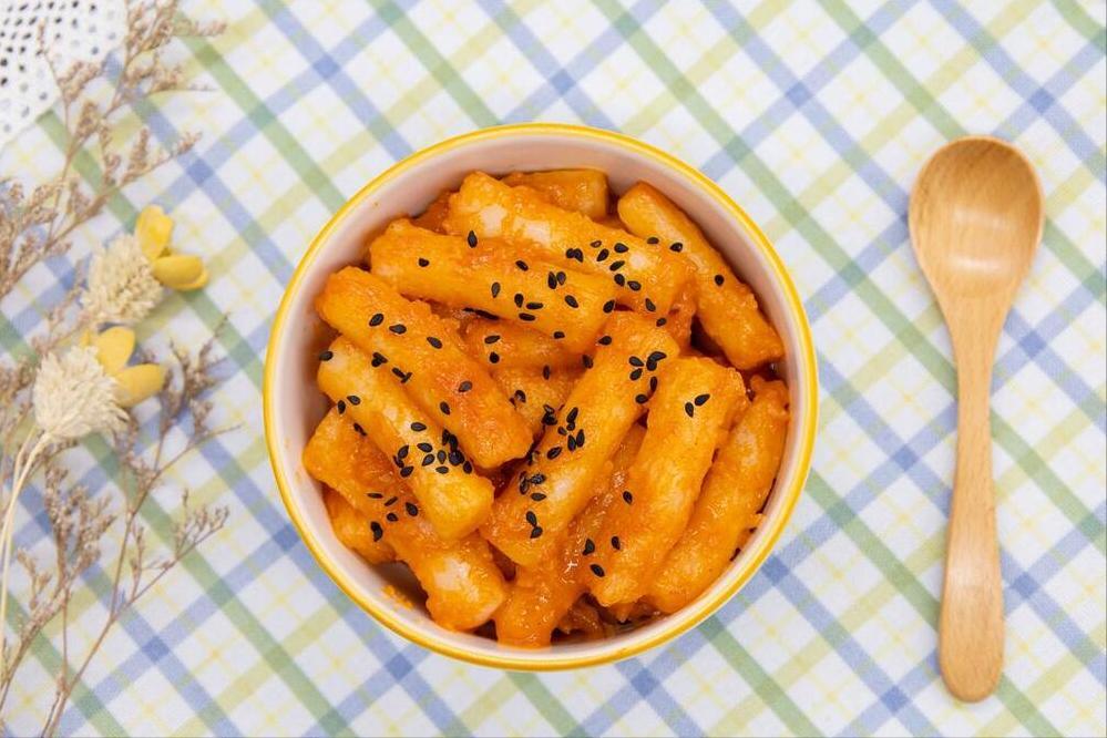 燒一鍋開水,把年糕下進去煮一下,煮軟後撈出來,大蒜切末。鍋中加上少許食用油,燒熱後爆香蒜末,接着倒入芝士翻炒至融化,然後加上1勺韓式辣醬、1勺生抽、少許鹽調味,接着下入年糕翻炒,炒熟以後撒上白芝麻,出鍋開喫!
