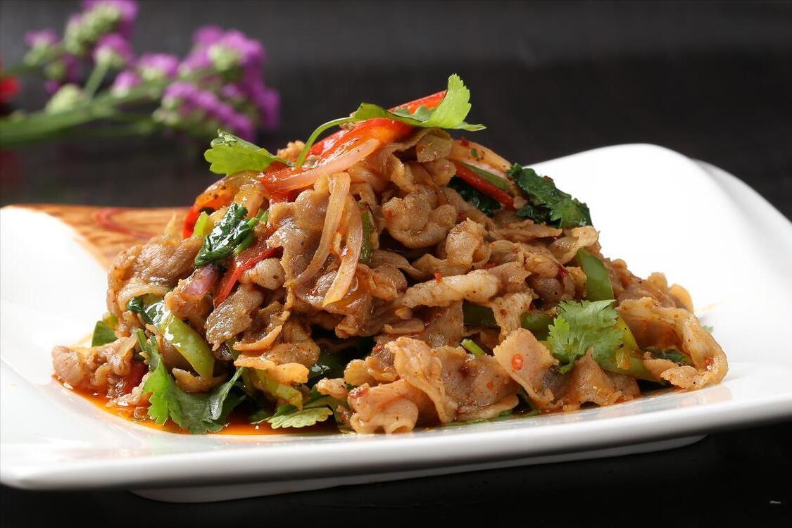 2、燒熱後下入姜蒜爆香,接着倒上羊肉捲開始翻炒,大火快速翻炒片刻後,往裏面來上1勺白糖、1勺鹽、1勺白胡椒粉、1勺孜然、1勺孜然粉、1勺生抽,最後再來少許雞精,快速炒勻後,最後撒上少許蔥花,出鍋。