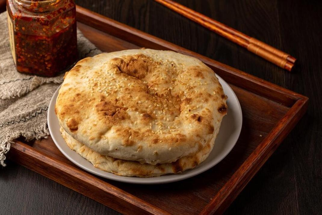 往麪粉中倒入清水,攪拌成面絮狀,之後再將其揉成麪糰,把麪糰揉好之後,接下來分成數個劑子,每一個劑子都揉圓按扁,然後在裏面撒上芝麻鹽,包起來壓成餅狀。之後起油鍋,燒熱以後把火燒下進去,煎到兩面金黃,取出來開喫。