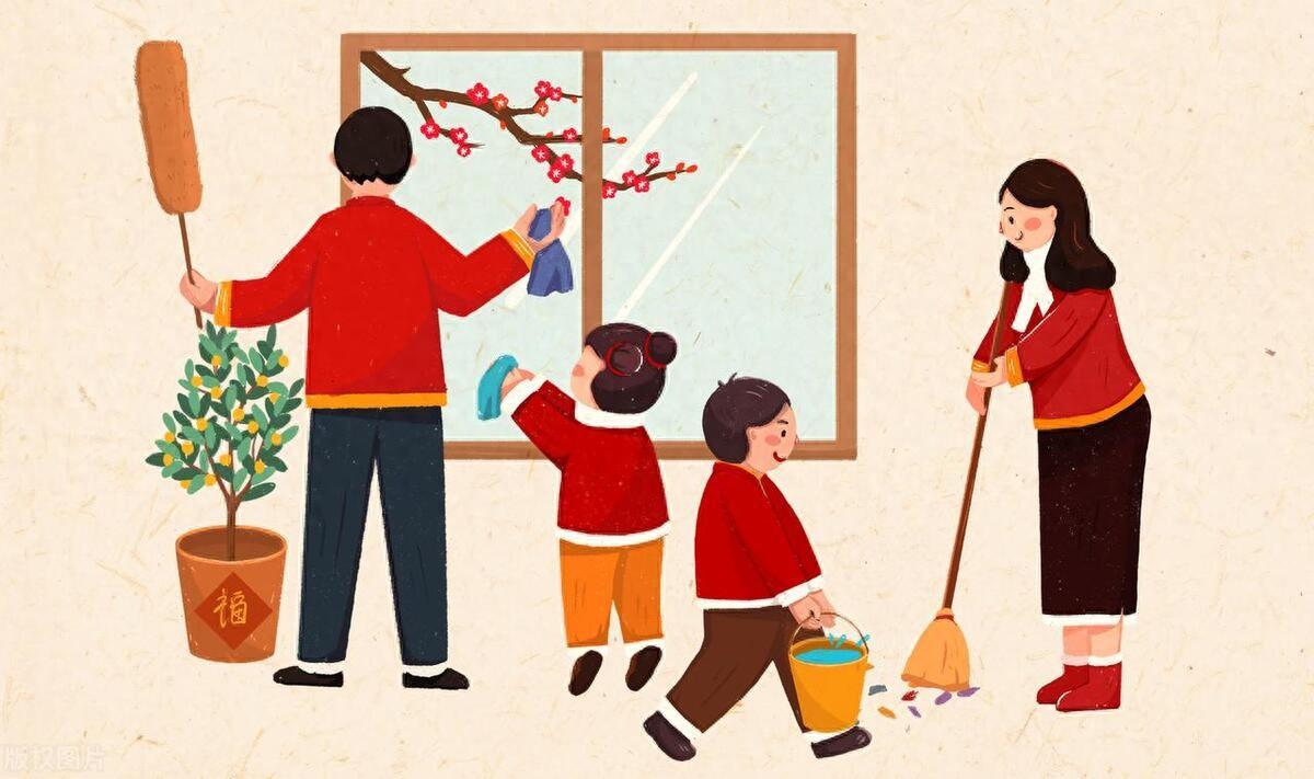 “二十三糖瓜粘,二十四掃房子,二十五做豆腐”,也就是說,到了臘月二十四也該做一次徹底地大掃除了,民間也叫掃塵,據說“塵”與“陳”諧音,掃塵就是掃除陳舊,把晦氣掃出門,迎接嶄新的一年,爲新的一年帶來好運和繁榮。
