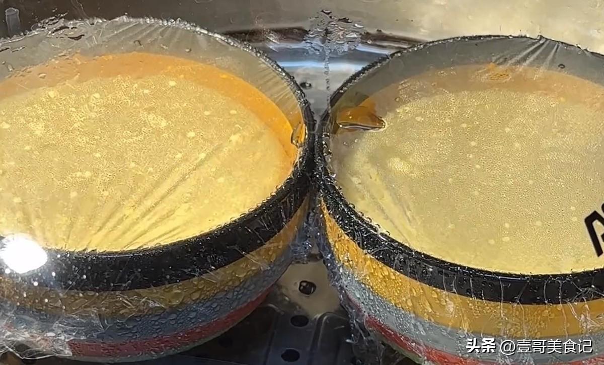 第八步,等時間到了碗裏的食材就全部蒸好了!我們先關掉火,再打開鍋蓋,帶上後手套,將小碗從籠屜中取出來,放在案板上。揭保鮮膜的時候一定要小心,因爲碗是有點燙的。等你揭開保鮮膜,就會聞到撲鼻的香味兒!雞蛋山藥蘋果羹也就做好了,簡單吧!
