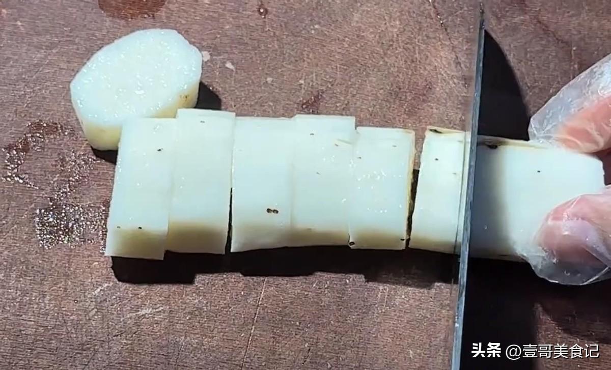 第一步,先準備一根山藥。鐵棍山藥營養豐富,但是它比較幹,所以我們就用普通的山藥就可以了。將山藥清洗乾淨,然後戴上手套,將山藥皮全部削掉,最後把它切成小塊的,放在碗中備用。