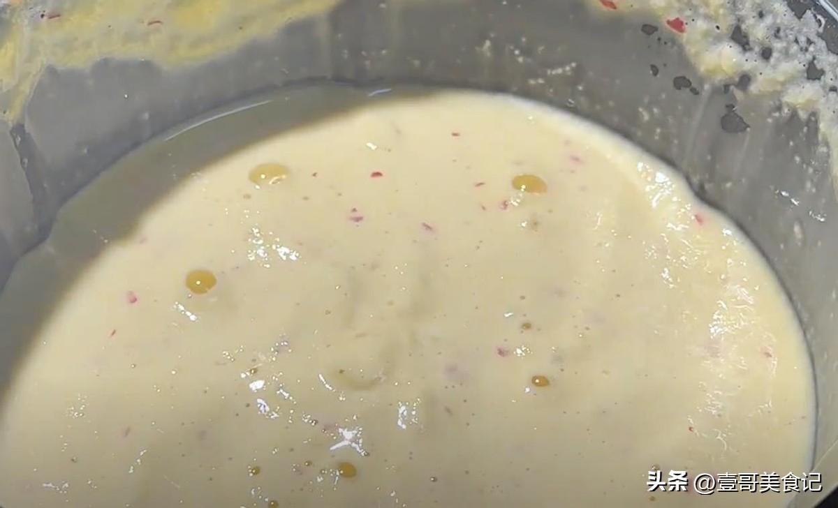 第五步,準備兩個或者三個小碗,把它洗乾淨之後,用刷子給碗的四周刷一些食用油。然後把我們攪好的山藥蘋果雞蛋糊,分別倒進幾個碗中就可以了。