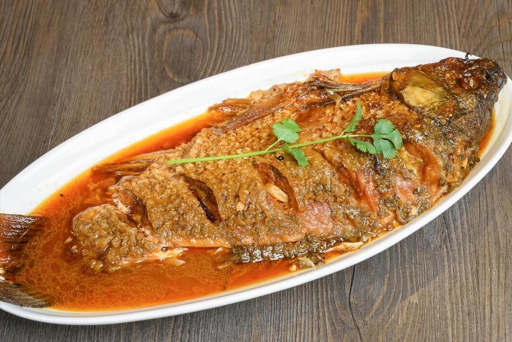 食材:魚、蔥薑蒜、小米椒、香菜、鹽、雞精、白糖、生抽、老抽、蠔油、料酒、食用油