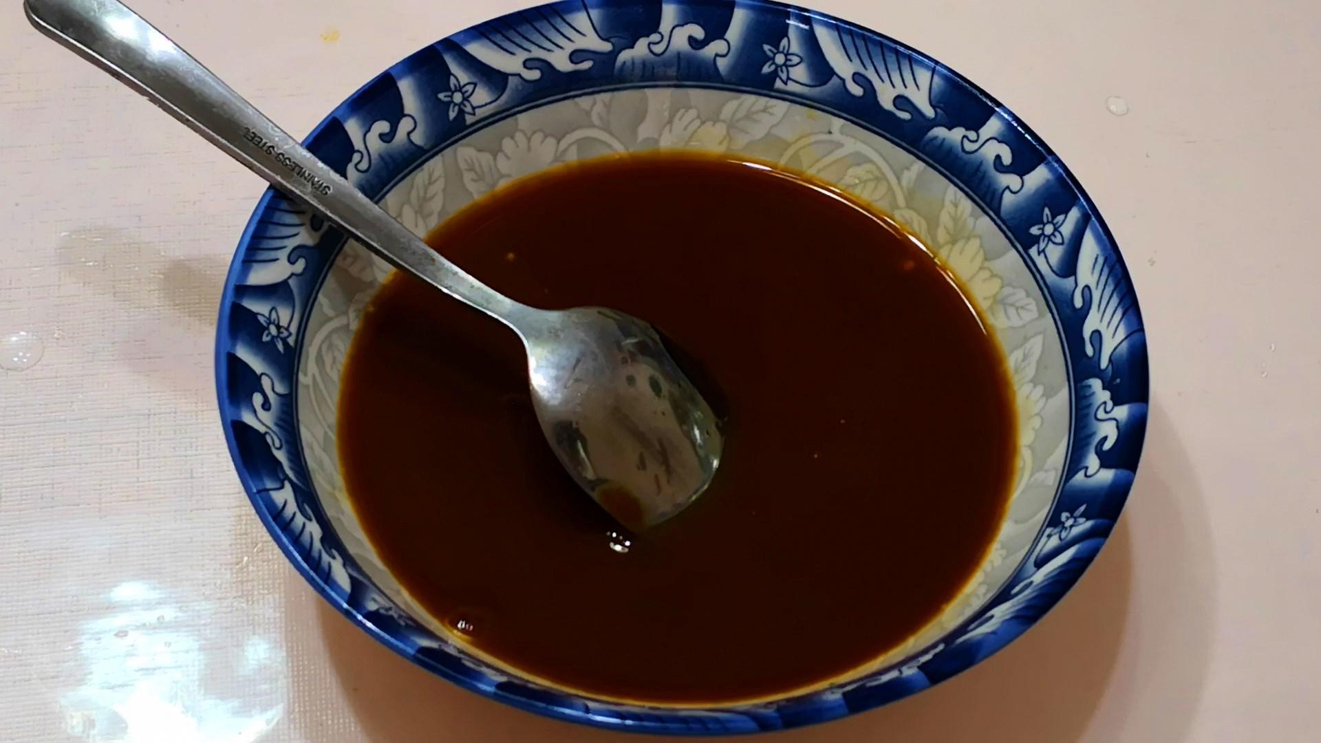 2.趁醃製帶魚的時間,我們再來調個糖醋汁:碗中分別加入適量的食鹽、1勺蠔油、1勺番茄醬、2勺白糖、2勺生抽和1勺澱粉,再加入少許清水,攪拌均勻後放一邊備用。