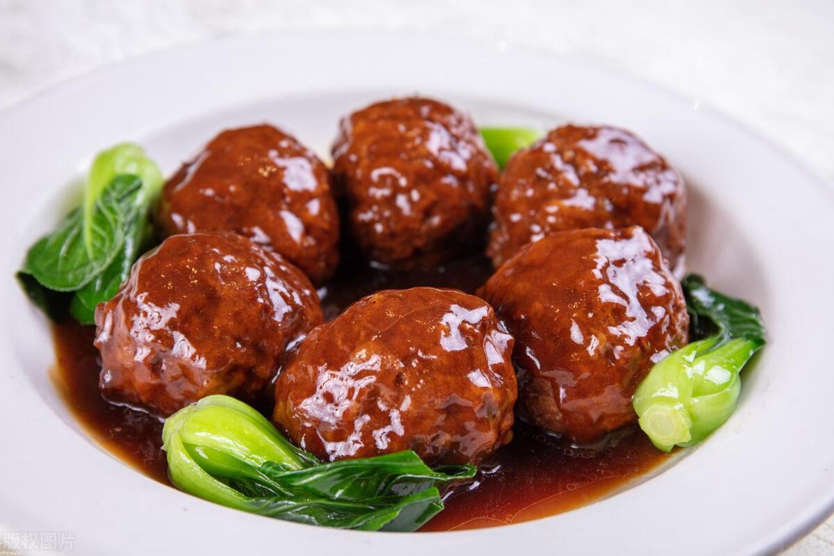 2、鍋中倒油,油六成熱時放入丸子,小火炸至表面金黃撈出控油。鍋中留少許底油,放入蔥姜爆香,加入適量清水,放入生抽、老抽、鹽、白糖調味,放入炸好的丸子,小火燉煮 15 - 20 分鐘,待湯汁濃稠後,撈出丸子裝盤,將湯汁澆在丸子上即可。