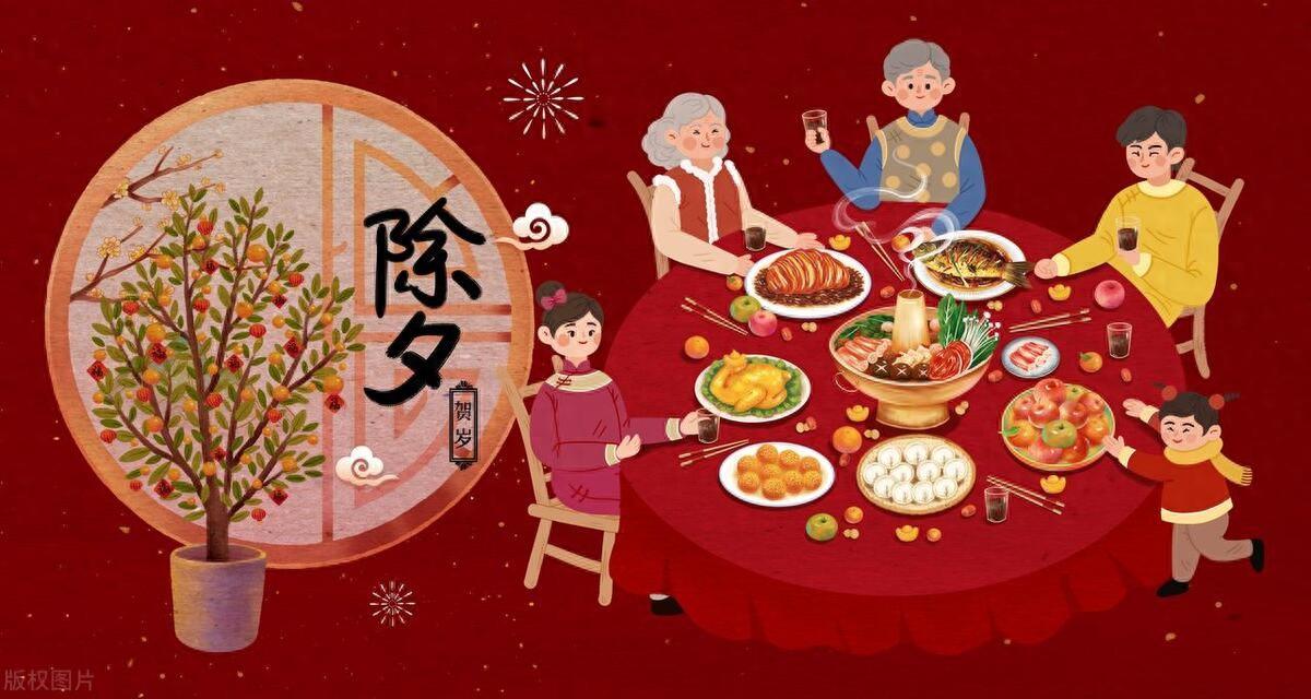 在古代,除夕最初被視爲歲除之夜,是一年中辭舊迎新的重要時刻。它象徵着舊歲的結束和新歲的開始,具有強烈的時間節點意義。古人認爲,在這一天,陰陽交替,陰氣漸退,陽氣漸生。因此,除夕也被賦予了驅邪避災、祈求平安吉祥的寓意。而現代人則是貼對聯、沾福字,然後就開始準備年夜飯,年夜飯則是除夕的重頭戲,年夜飯也叫團圓飯、閤家飯,是家庭一年到頭最重要的一頓飯,一家人團團圓圓坐到一起,享受着難得的歡聚和親情。