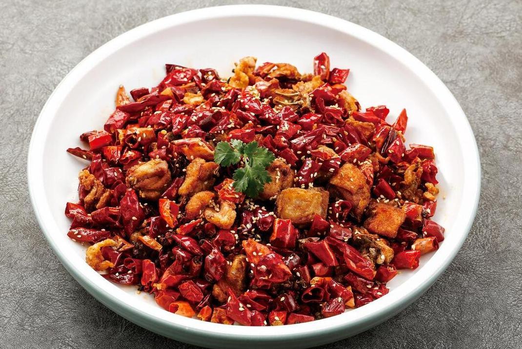 2、鍋中多來點油,燒熱後把雞肉倒進去開始炸,炸到色澤金黃後盛出來,之後復炸一次,炸到幹香撈出來。留底油,把幹辣椒、花椒、大蒜倒進去爆香,然後倒入雞肉,用鹽、白糖、味精調味,出鍋之前撒上白芝麻即可。