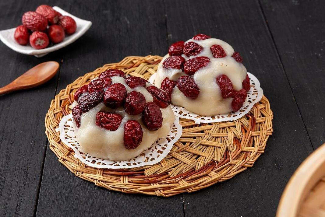 準備一個小盆,把糯米粉倒進去,然後加上適量的清水,用筷子來不停的攪拌,攪拌好之後再揉成麪糰,麪糰可以揪成劑子,分成數個小麪糰,也可以直接放到鍋子裏蒸,點綴上紅棗,開火開始蒸,保持大火上汽後繼續蒸20分鐘,出鍋開喫!