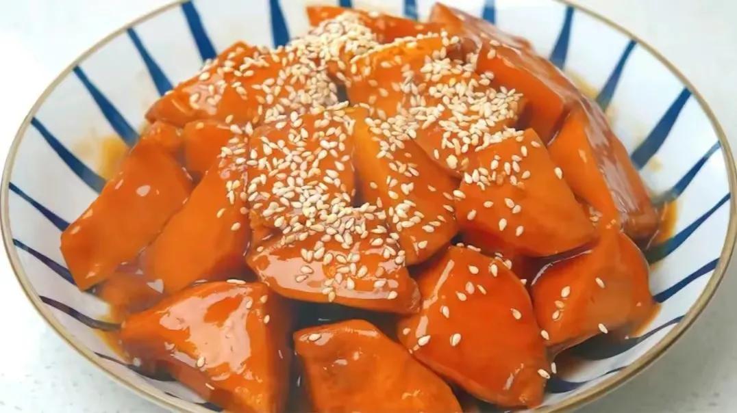 - 紅薯裹漿與蒸制:趁熱將熬好的糖漿均勻地淋在炸好的紅薯塊上,讓每一塊紅薯都被甜蜜包裹。隨後,將裹好糖漿的紅薯放入蒸鍋中,等水燒開後,轉中火蒸上半小時。時間到了,關火後別急着打開鍋蓋,先燜幾分鐘,讓紅薯充分吸收糖漿的味道。最後,小心地將紅薯倒扣在盤子裏,撒上一把香噴噴的白芝麻。