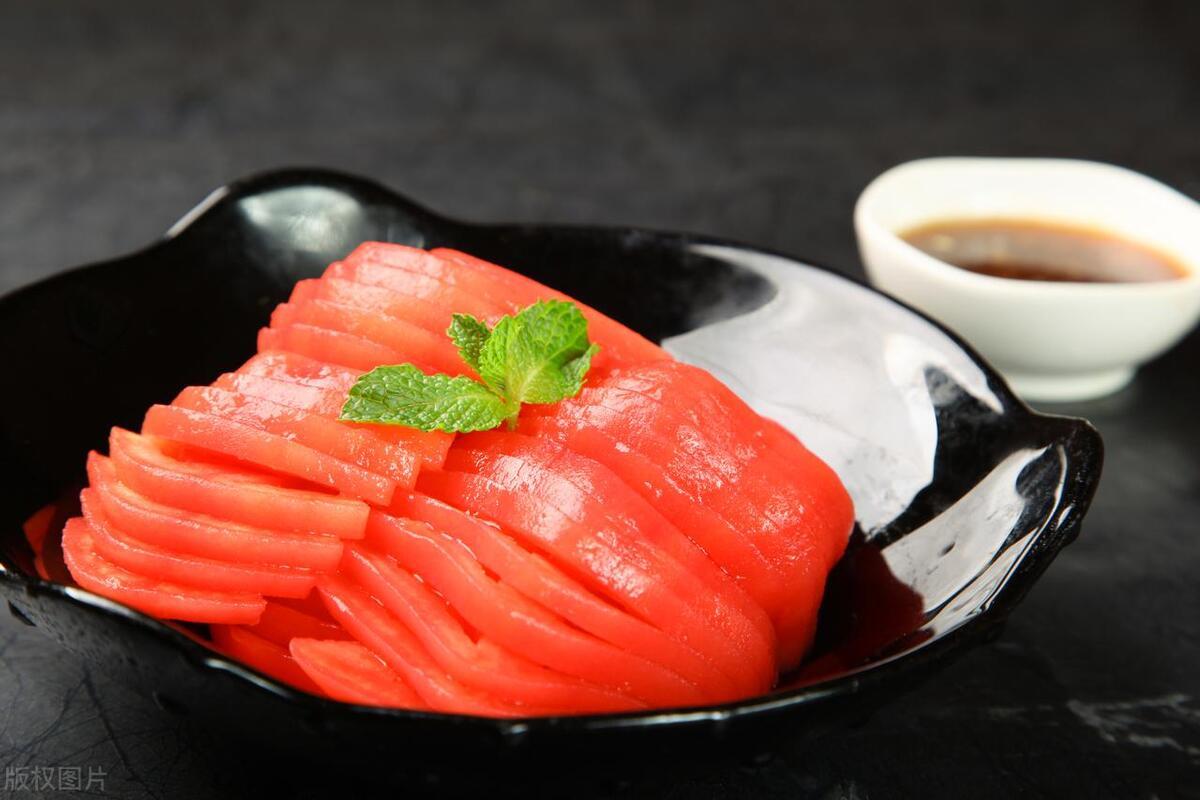 - 將切好的西紅柿片擺盤,擺成花朵形狀,中間撒上白糖即可。