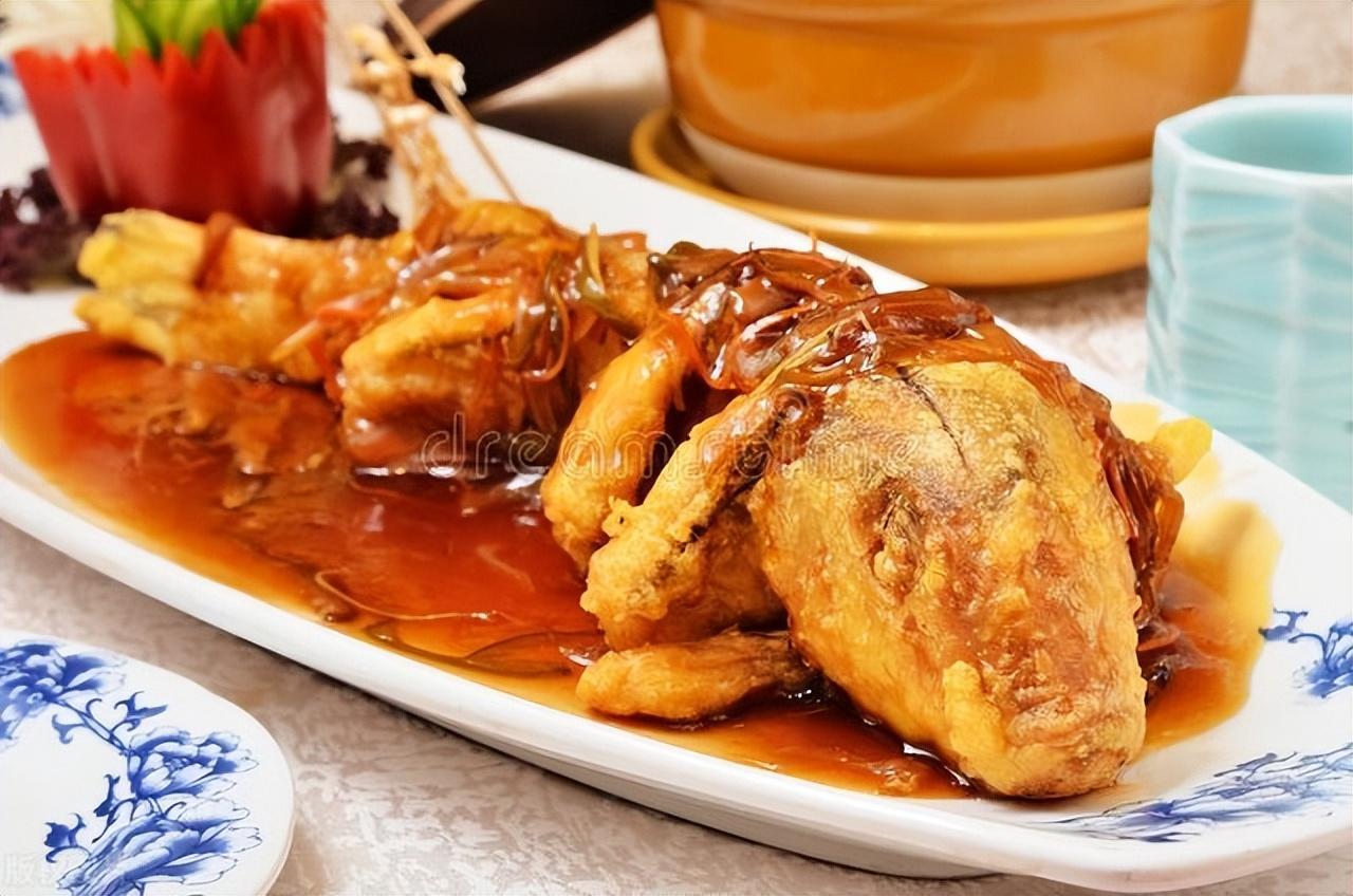 - 小碗裏放番茄醬、白醋、白糖和清水,攪勻成糖醋汁。鯉魚醃好後兩面撒麪粉,放入麪糊。五成油溫時放入鯉魚,用勺子澆熱油使其受熱均勻,炸至兩面金黃後控油撈出。