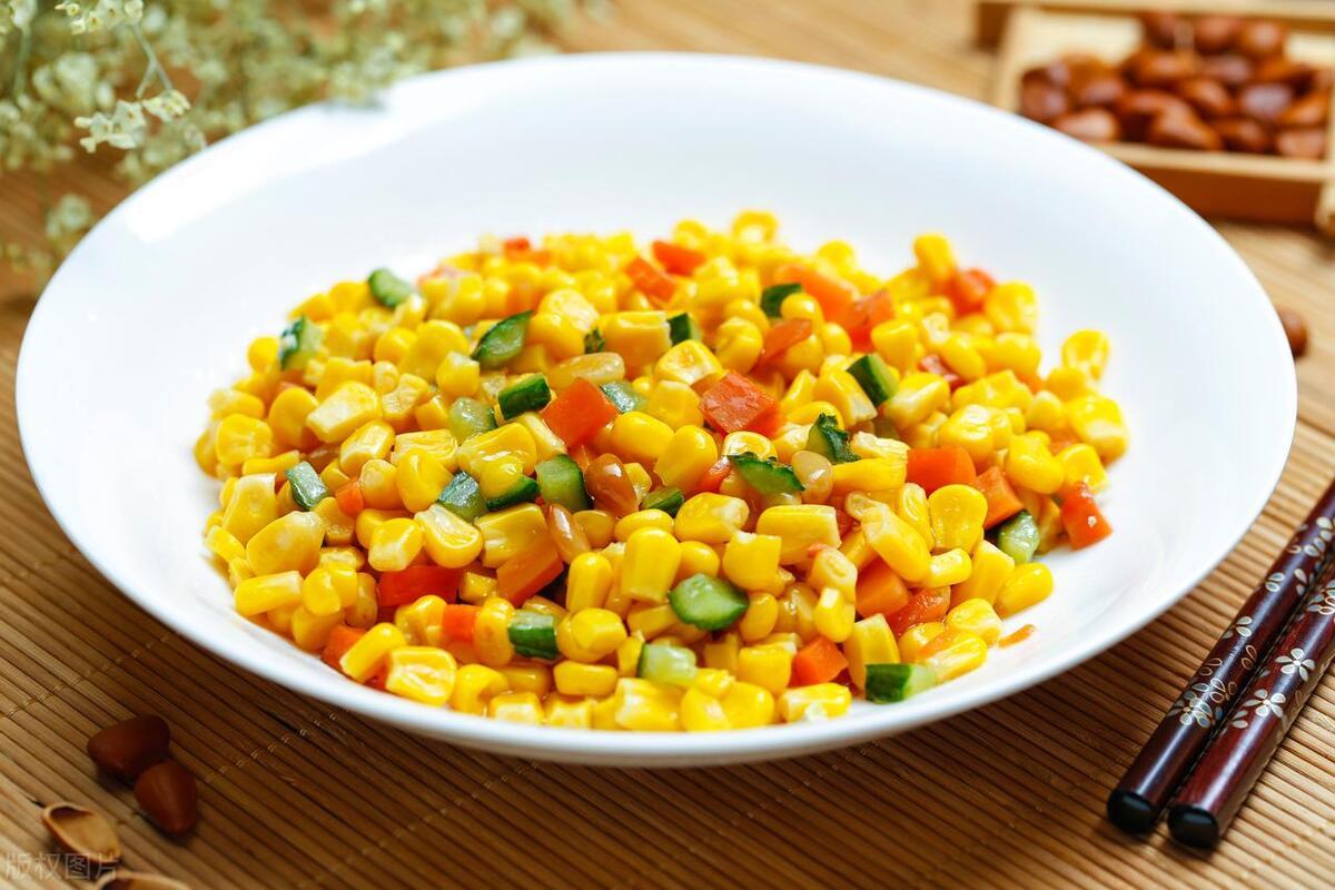 - 鍋中倒入適量清水,水開後加入少許鹽和幾滴食用油,分別將玉米粒、豌豆、胡蘿蔔丁焯水至斷生,撈出瀝乾水分。