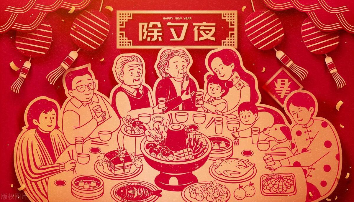 - 年夜飯:又稱團圓飯,是除夕夜最重要的習俗之一。一家人無論相隔多遠,都會在這一天趕回家中,圍坐在一起,共享豐盛的晚餐。年夜飯的菜品豐富多樣,每一道菜都蘊含着特殊的寓意。比如魚,象徵着 “年年有餘”;雞,寓意着 “吉祥如意”;湯圓,代表着 “團團圓圓”。一家人邊喫邊聊,歡聲笑語,充滿了濃濃的親情和節日的喜慶氛圍。