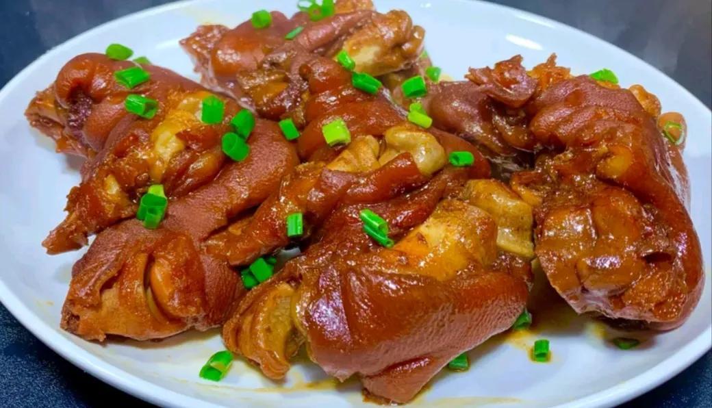 - 大火燒開後轉小火慢燉 1.5 - 2 小時,直至豬蹄軟爛,用筷子能輕鬆插入。繼續讓豬蹄在滷汁中浸泡 1 - 2 小時,入味後撈出。