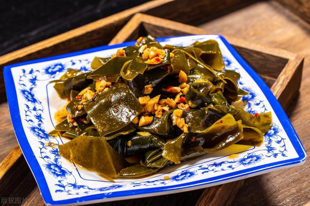 - 鍋中燒開水,放入海帶結焯水 2 - 3 分鐘,撈出瀝乾水分。