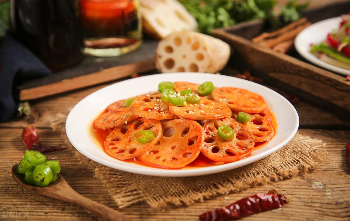 - 鍋中加入適量清水,放入所有香料和調料,大火燒開後煮 5 - 8 分鐘。放入藕片,小火慢燉 8 - 10 分鐘,關火後浸泡 1 - 2 小時,撈出裝盤。