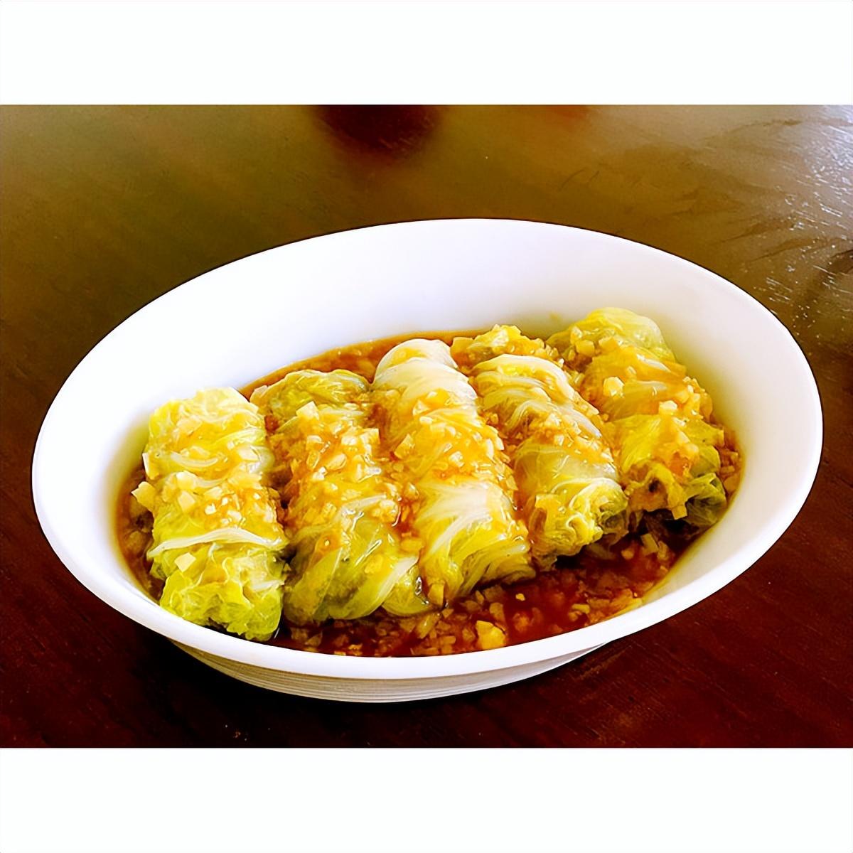 6鍋裏燒點熱油,潑到白菜肉捲上面,即可。
