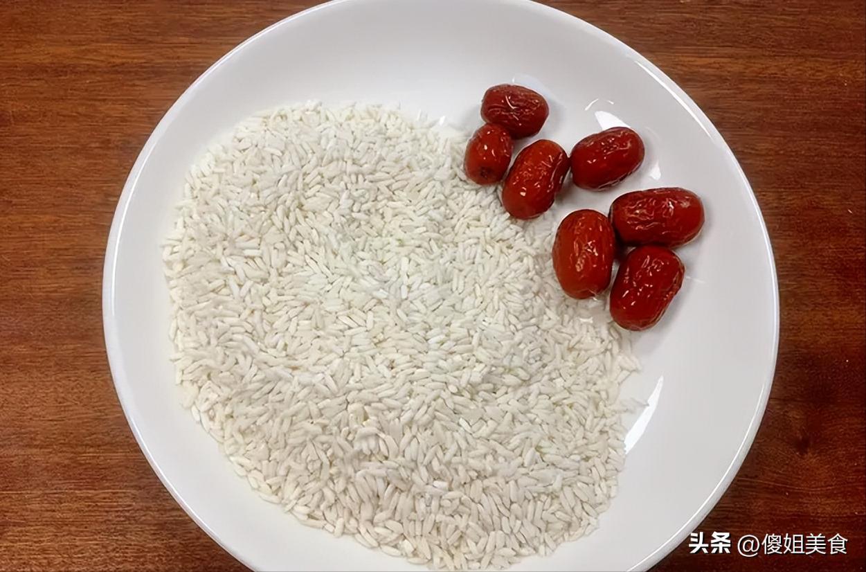 準備食材:糯米粉 200克、粘米粉 100克、白糖 50克、紅棗 適量