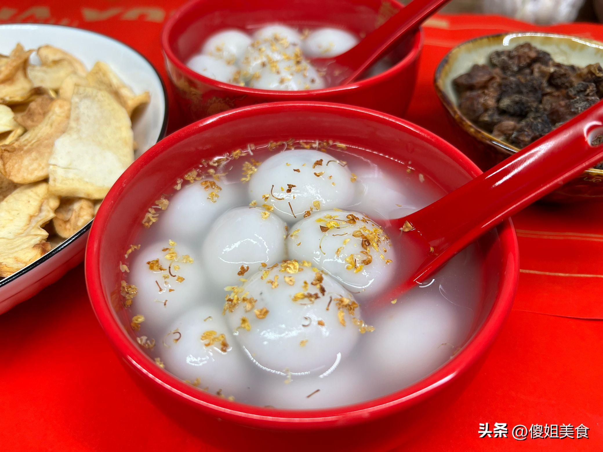 湯圓:湯圓象徵着團圓與甜蜜,尤其是我們家自己做的湯圓。糯米皮包裹着甜美的黑芝麻餡,柔軟的皮和香甜的內餡混合在一起,喫上一口,真的是滿滿的幸福。