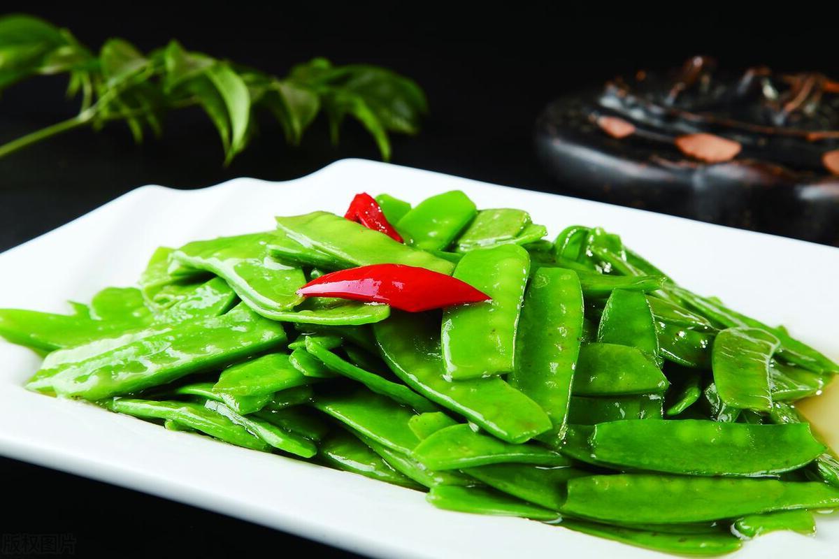 - 加入荷蘭豆大火快速翻炒均勻,根據個人口味加入適量鹽調味,翻炒幾下即可出鍋裝盤。